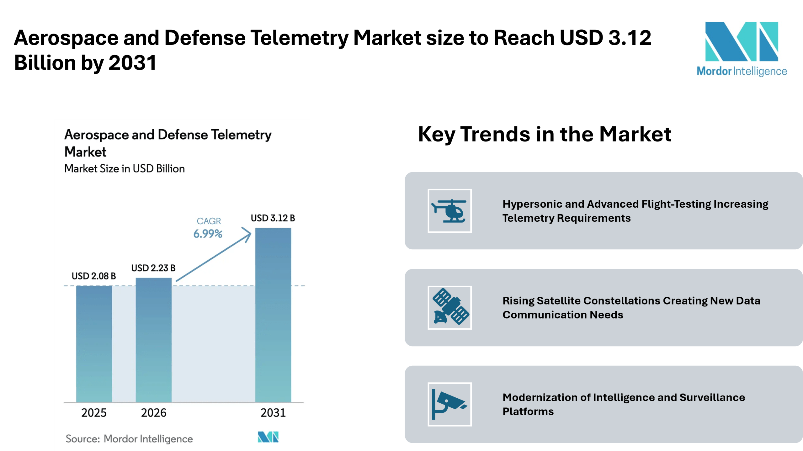 According to Mordor Intelligence, the aerospace and defense telemetry market size is projected to grow from USD 2.08 billion in 2025 to USD 2.23 billion in 2026, and it is expected to reach USD 3.12 billion by 2031, reflecting steady expansion across the global aerospace and defense telemetry industry.