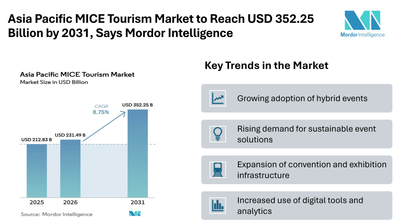 Asia Pacific MICE Tourism Market to Reach USD 352.25 Billion by 2031, Says Mordor Intelligence