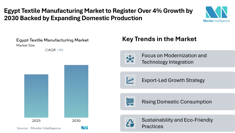 The market benefits from robust government initiatives that aim to modernize textile production facilities, attract foreign investments, and strengthen Egypt’s position in global trade. Additionally, rising demand for both high-quality apparel in domestic markets and exports to Europe and the United States has ensured steady momentum for manufacturers.