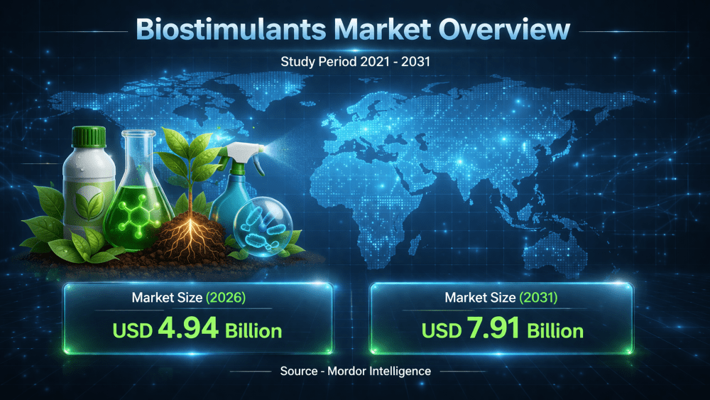 The growth of the biostimulants market is attracting significant attention as agriculture shifts toward sustainable and efficient crop production methods. According to industry analysis by Mordor Intelligence, the biostimulants market size was valued at USD 4.5 billion in 2025 and is projected to grow from USD 4.94 billion in 2026 to reach USD 7.91 billion by 2031, with a CAGR of 9.85% during the forecast period. This consistent growth in the biostimulants market reflects increasing awareness among farmers about enhancing crop performance while reducing reliance on traditional chemical inputs.